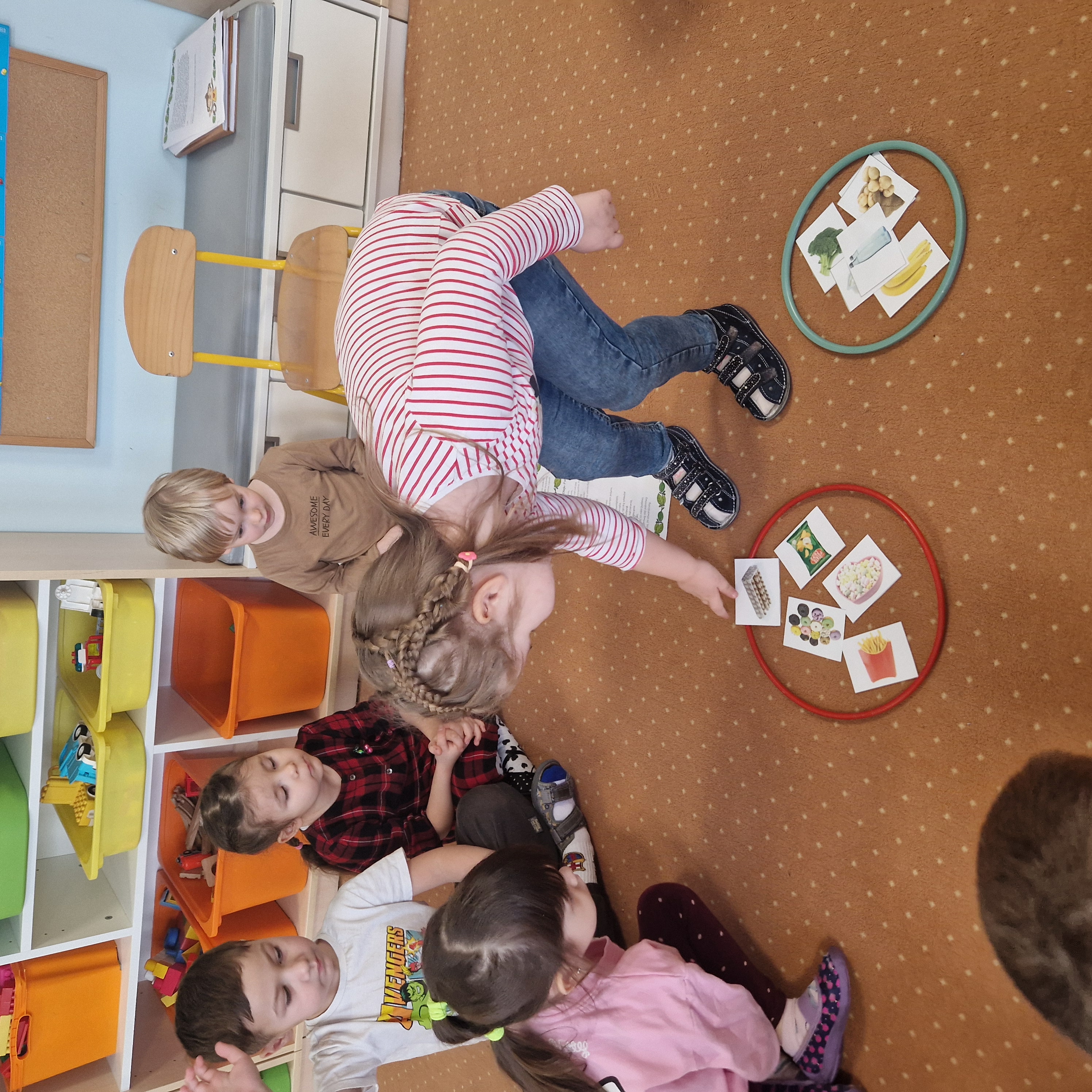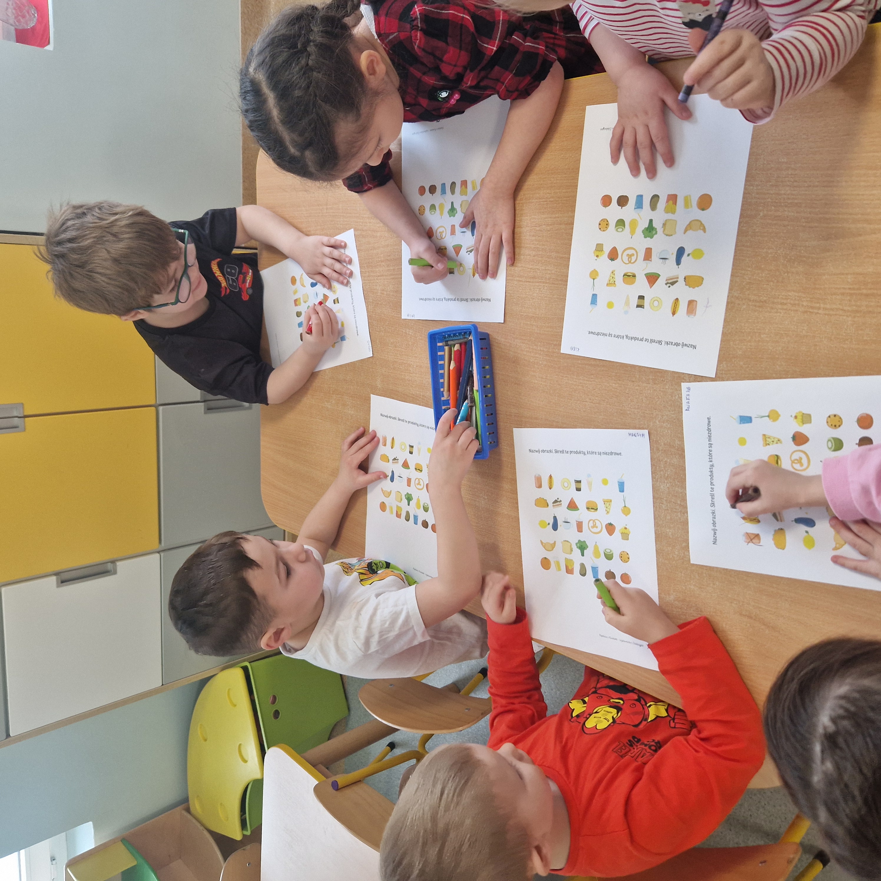 Grupa II zrealizowała zadanie IV - Dzień bez Oleju Palmowego. Podczas zajęć dzieci dowiedziały się, czym jest olej palmowy oraz jak go unikać. Posegregowały obrazki przedstawiające produkty spożywcze na zdrowe i niezdrowe, czyli najczęściej zawierające olej palmowy. Na zakończenie wykonały kartę pracy dołączoną do projektu.