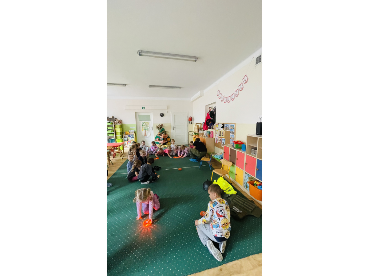Jesteśmy bardzo ciekawi świata i otaczającego świata, dlatego chętnie poznajemy zawody wykonywane przez naszych rodziców. Tata Ani oraz pani Zofia, w bardzo ciekawy sposób przedstawili nam zawód strażnika granicznego oraz jego ekwipunek. Poznaliśmy także zasady bezpieczeństwa, jakich należy przestrzegać wybierając się w podróż zagranicę. Byliśmy zachwyceni wszystkim co zobaczyliśmy i wiemy już, że to bardzo interesująca i odpowiedzialna praca.