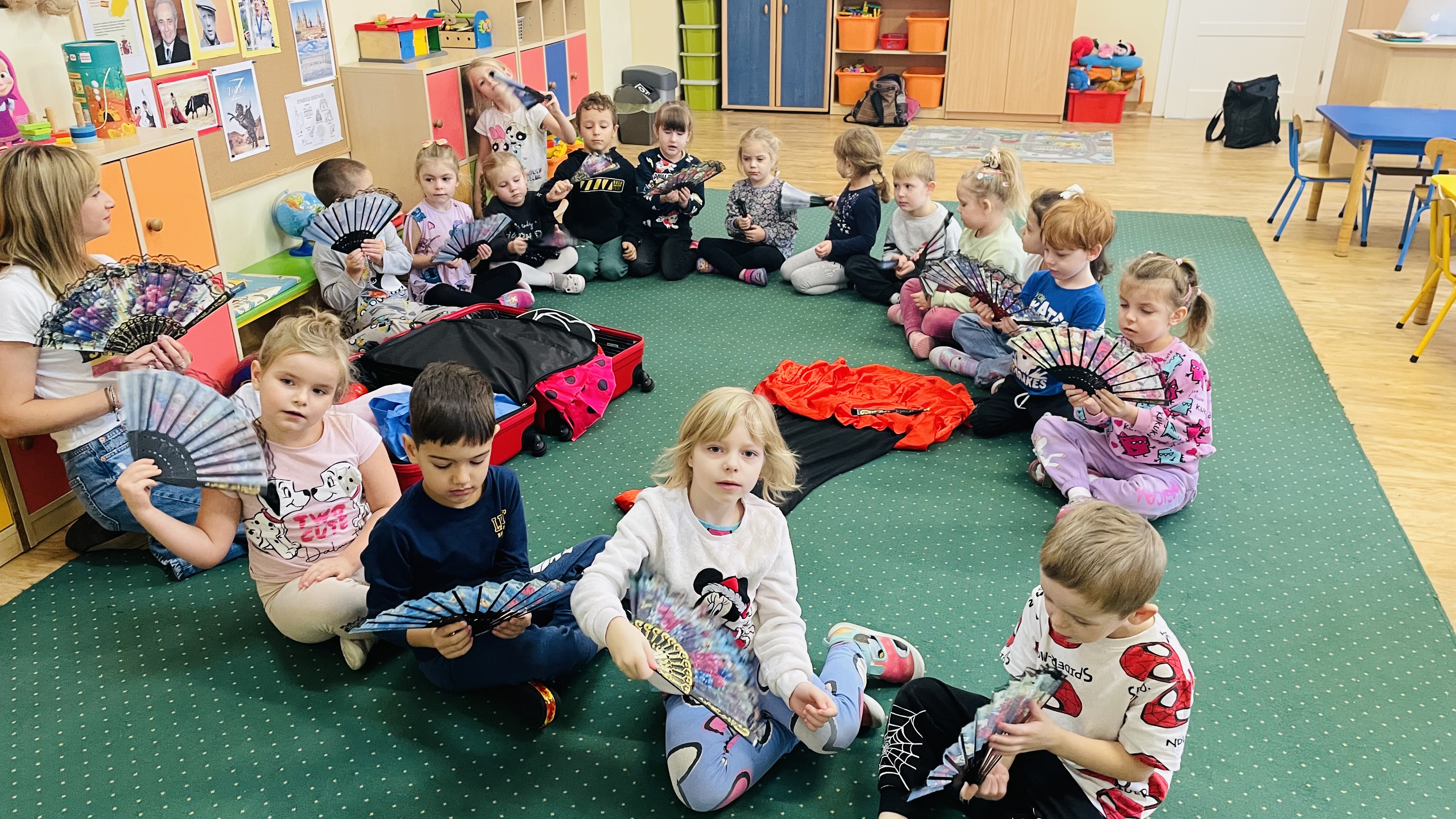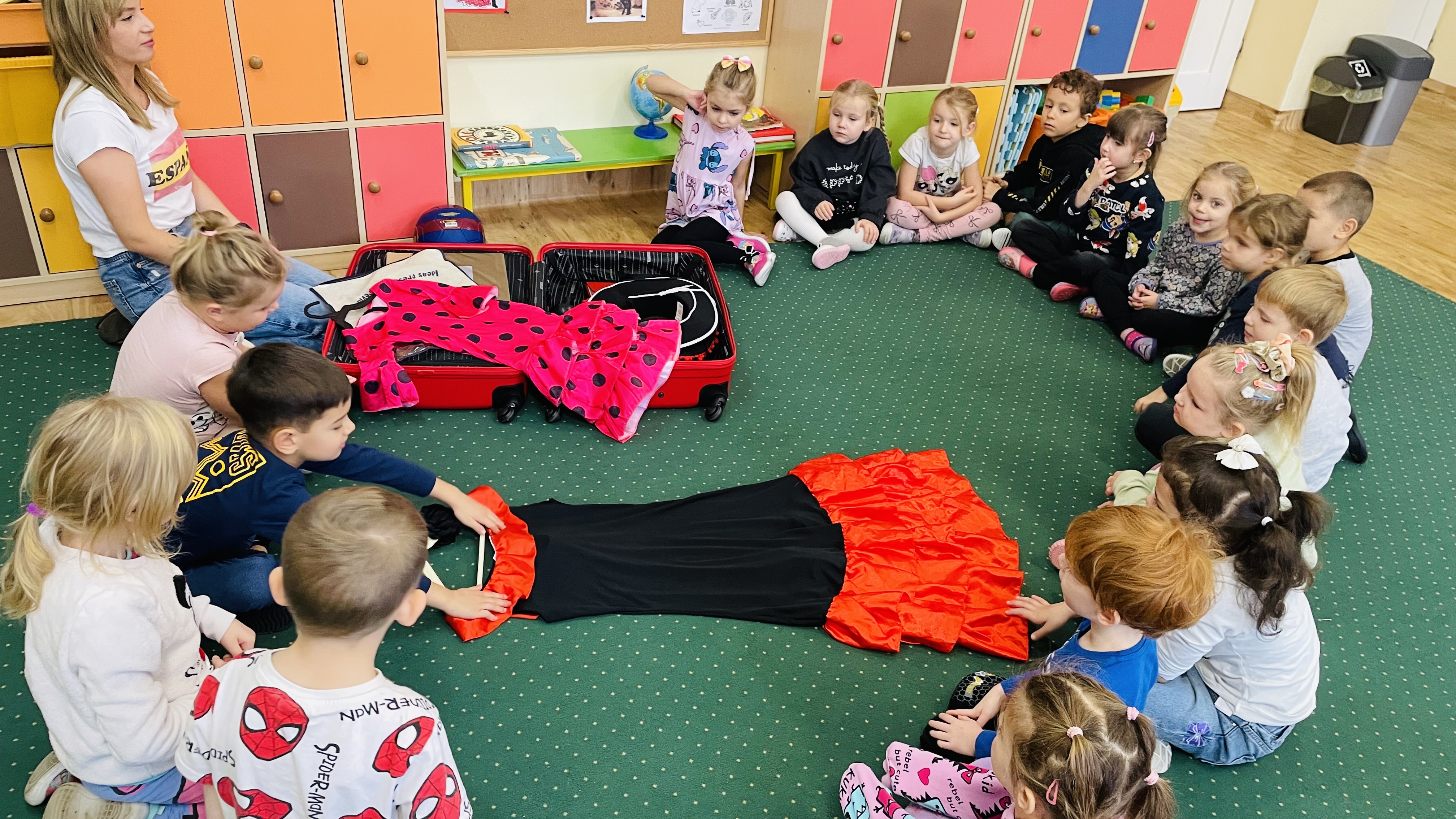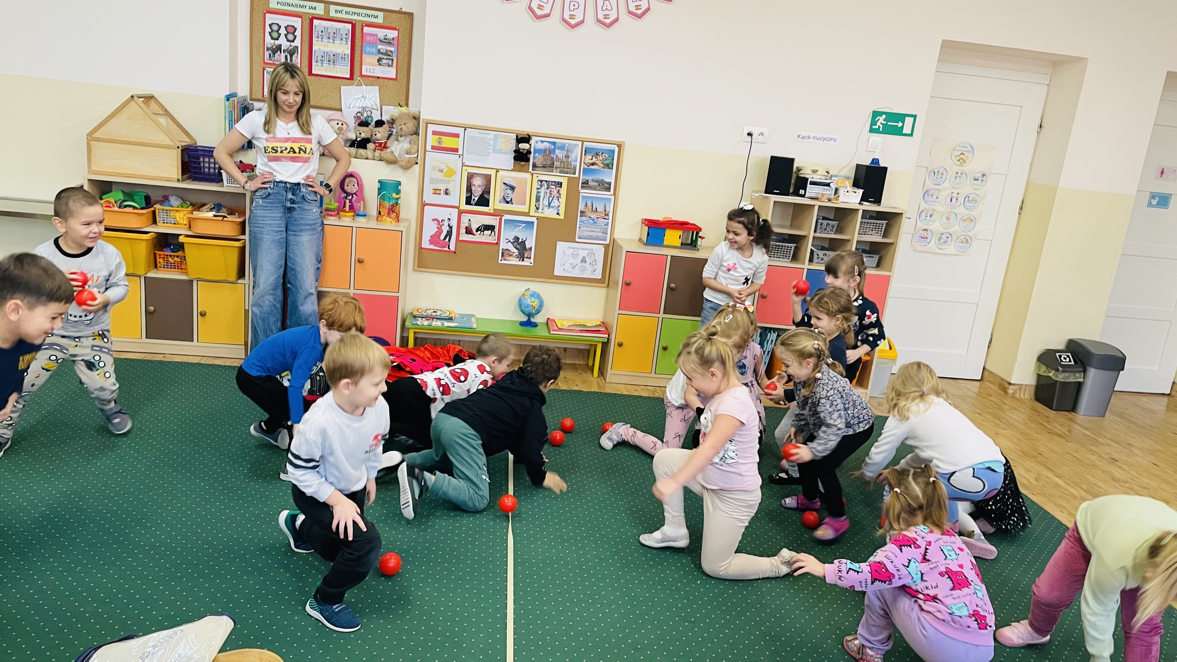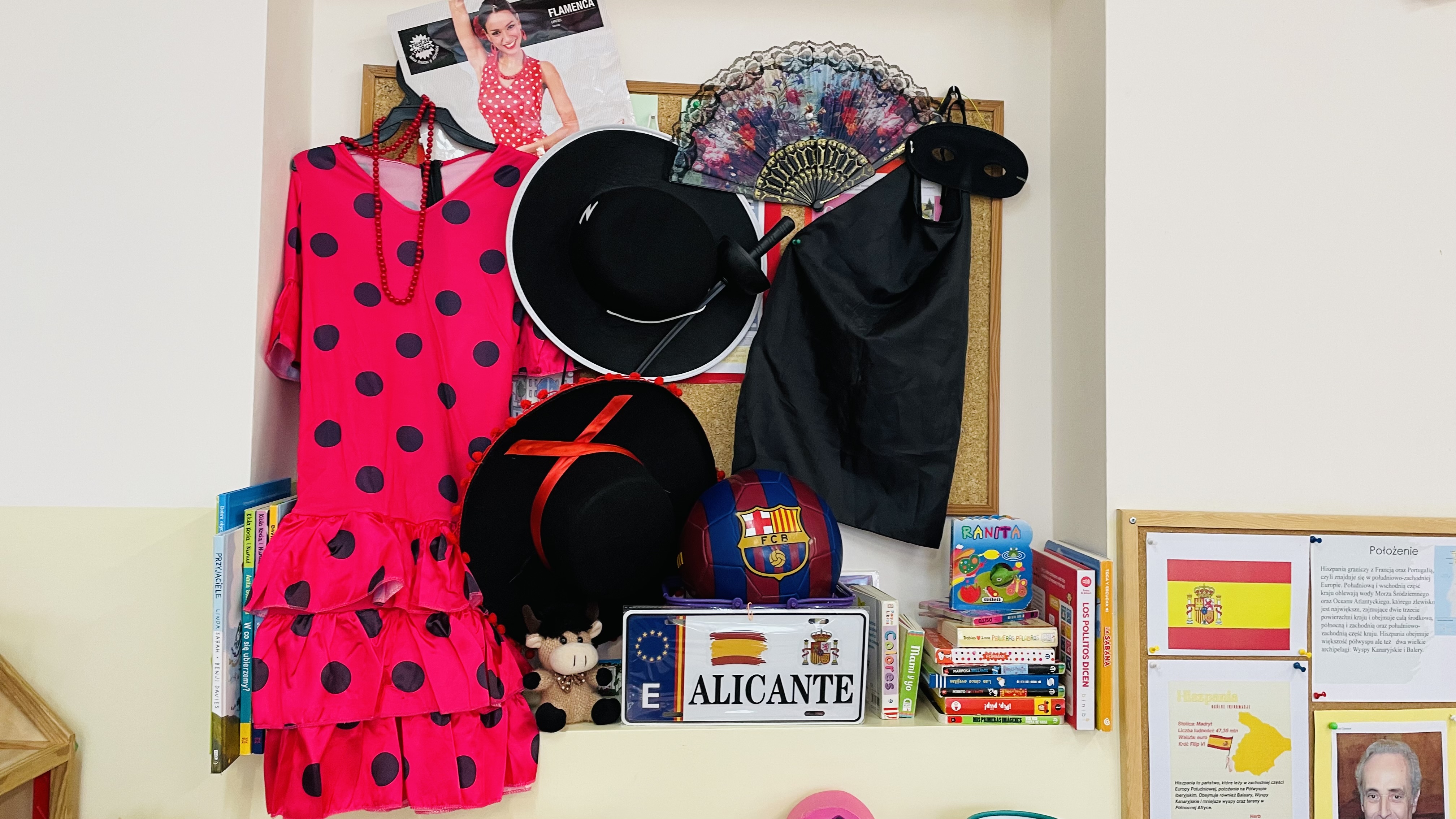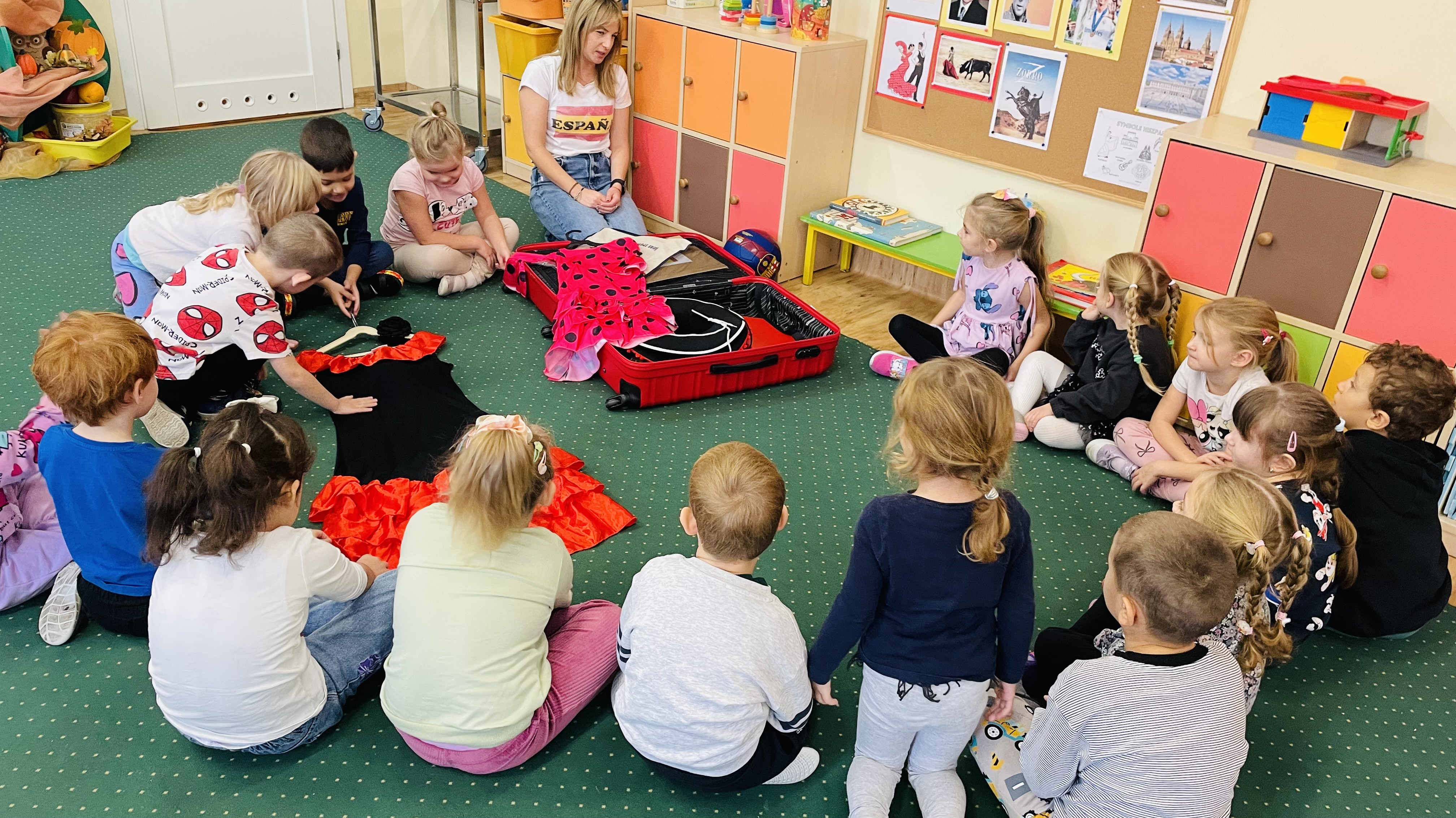 Nasza grupa realizowała miejski projekt edukacyjny „Walizka z podróży- Hiszpania”, którego celem jest budowanie postawy tolerancji i akceptacji wśród najmłodszych. Dzięki udziałowi w projekcie dzieci poznały kulturę Hiszpanii, położenie geograficzne, symbole narodowe, charakterystyczne potrawy, zwyczaje i muzykę. Mogły wcielić się w rolę charakterystycznych postaci, np. Zorro, piłkarzy ze znanych hiszpańskich klubów sportowych oraz naśladowały hiszpańskiego artystę P. Picasso - tworząc prace plastyczną wzorowaną jego dziełami. Dzięki wizycie gościa, pani Sary Jurkiewicz – nauczyciela języka hiszpańskiego w International School of Bydgoszcz, dzieci osłuchały się z brzmieniem języka, poznały hiszpańskie zabawy na powitanie oraz wzięły poznały hiszpańskie święto i zabawę „Tomatina”. Podziwiały hiszpańskie wachlarze i stroje tancerek flamenco oraz spróbowały tańczyć do muzyki flamenco. Wspólnie z nauczycielami dzieci tworzyły tematyczny kącik o Hiszpanii, w którym znalazły się pamiątki z Hiszpanii oraz książki dla dzieci w języku hiszpańskim. Na koniec dziewczynki i chłopcy poznali technikę składania kartki, tak aby powstał wachlarz i każdy wykonał wachlarz wg swojego pomysłu. To był tydzień pełen ciekawych zabaw i wspaniałych wrażeń.