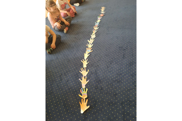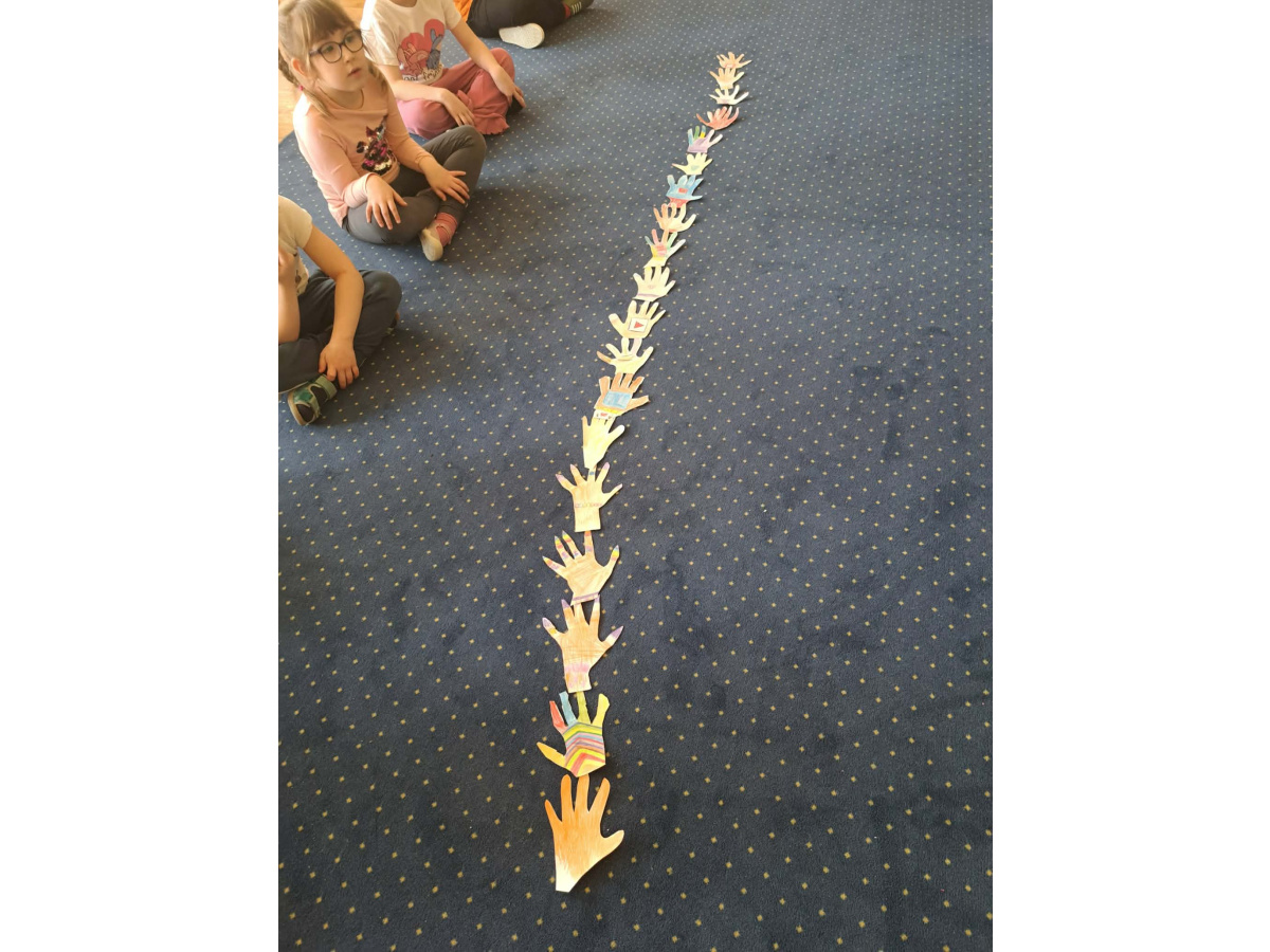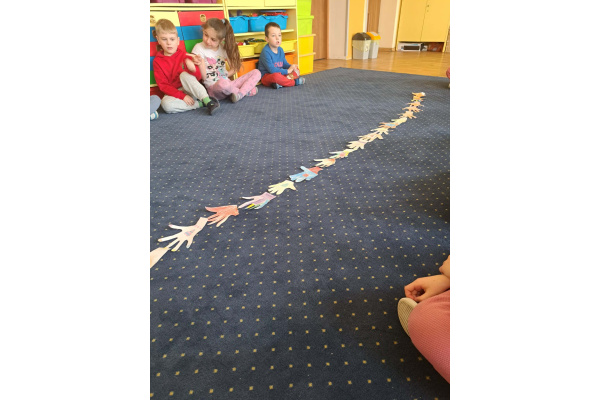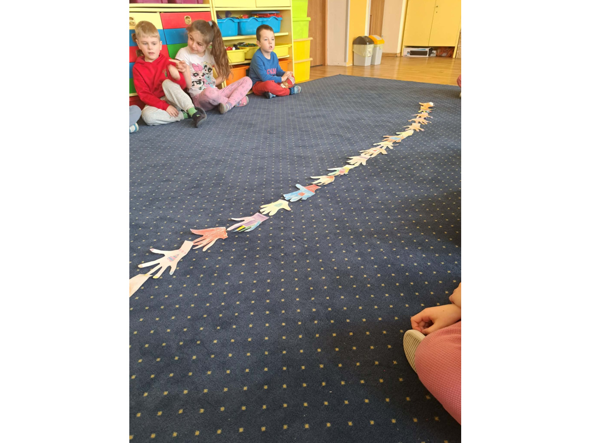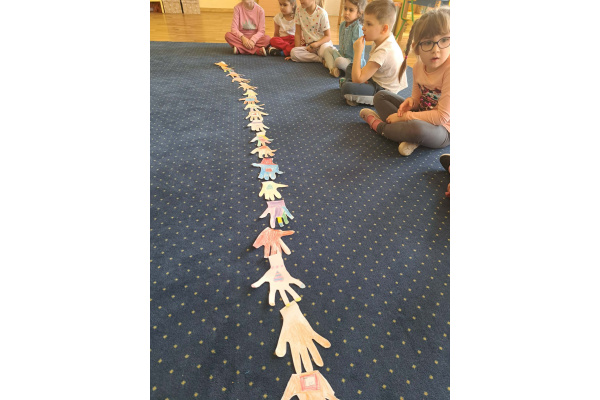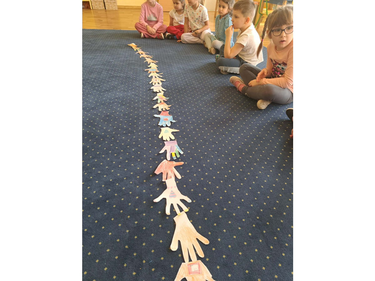 W ramach realizacji projektu edukacyjnego Ja, Ty, My - Razem Mimo Różnic dzieci czteroletnie z grupy IX, wraz z dziećmi z grupy IV wykonały i ułożyły ,,Most Przyjaźni"