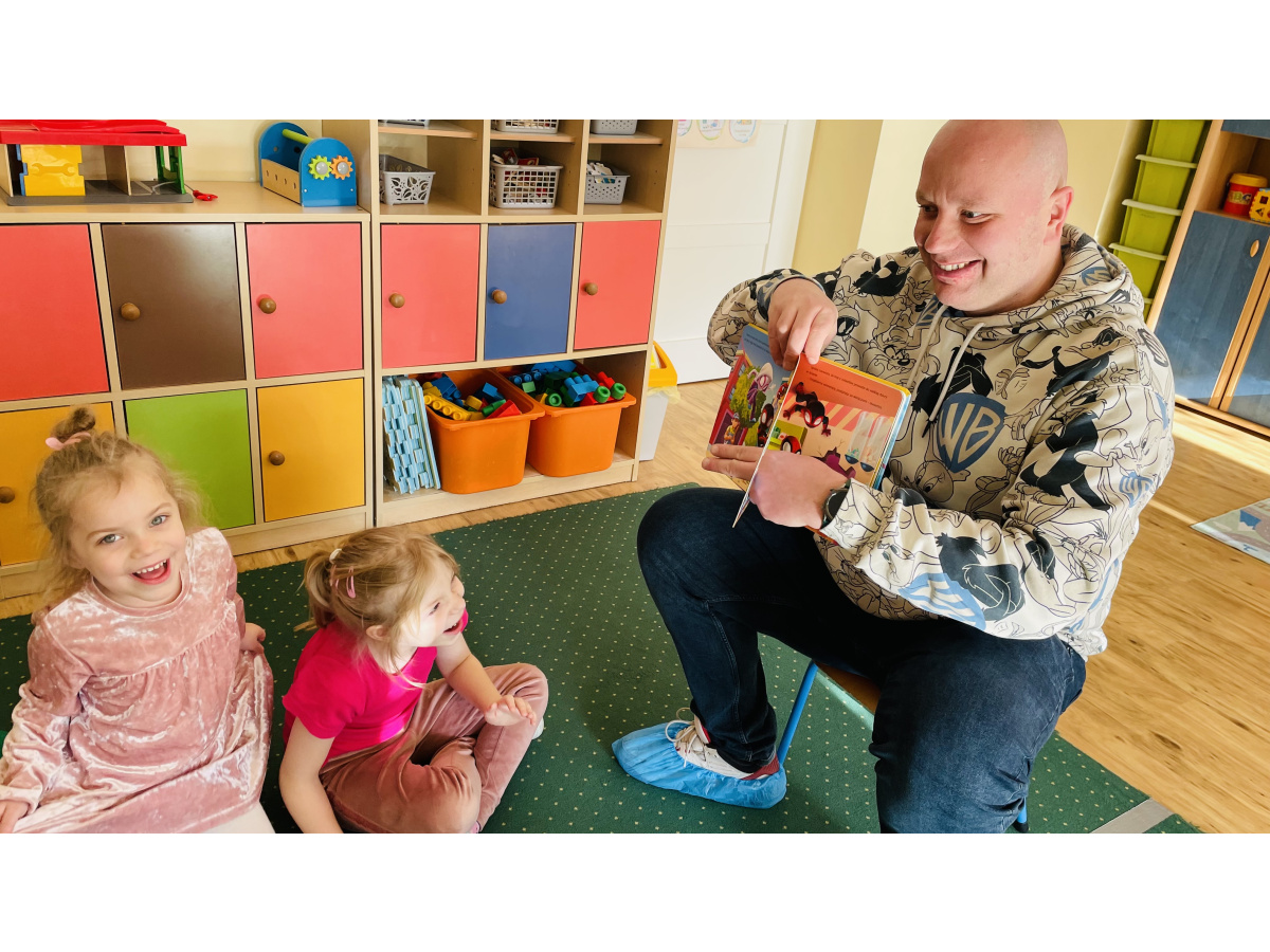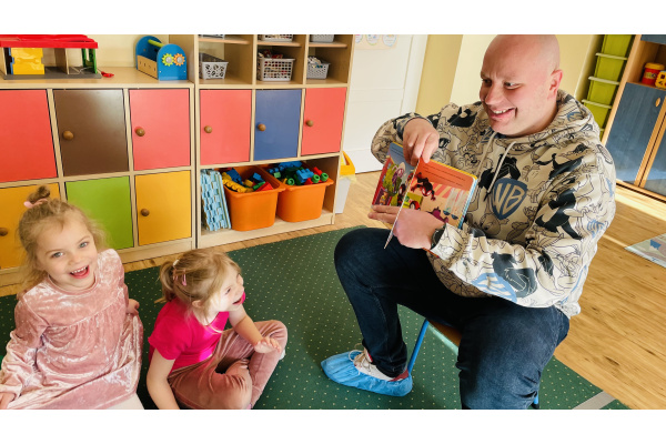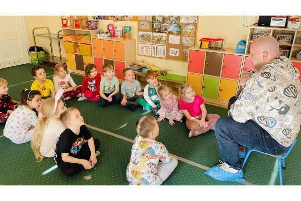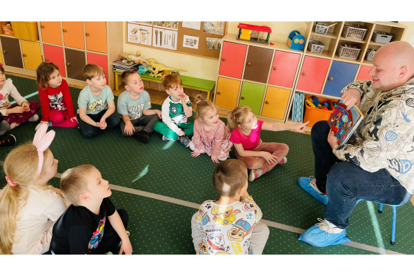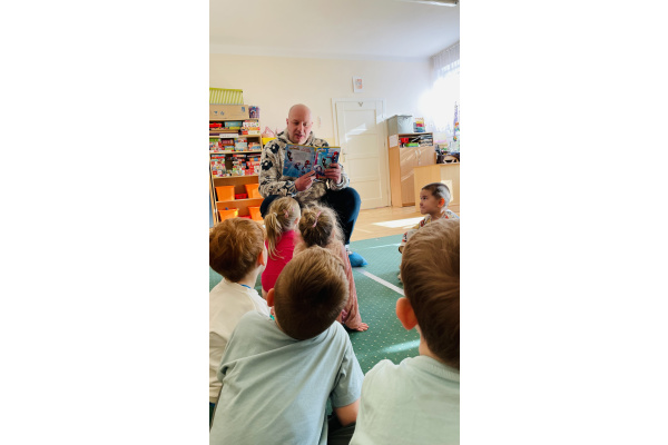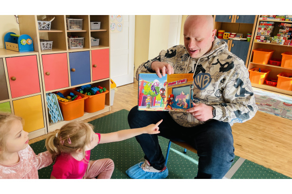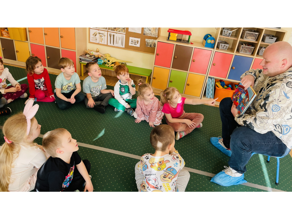 Do naszej grupowej akcji "Rodzice czytają dzieciom" włączył się pan Krzysztof, który wspólnie z Szymonem wybrał książkę do przeczytania grupie. Było to ilustrowane opowiadanie o przygodach Spidermana. Wszyscy byli zachwyceni, bo już za chwilkę rozpoczynaliśmy tematykę "Wszyscy jesteśmy superbohaterami – jesteśmy tolerancyjni, empatyczni i dbamy o relacje w naszej grupie”