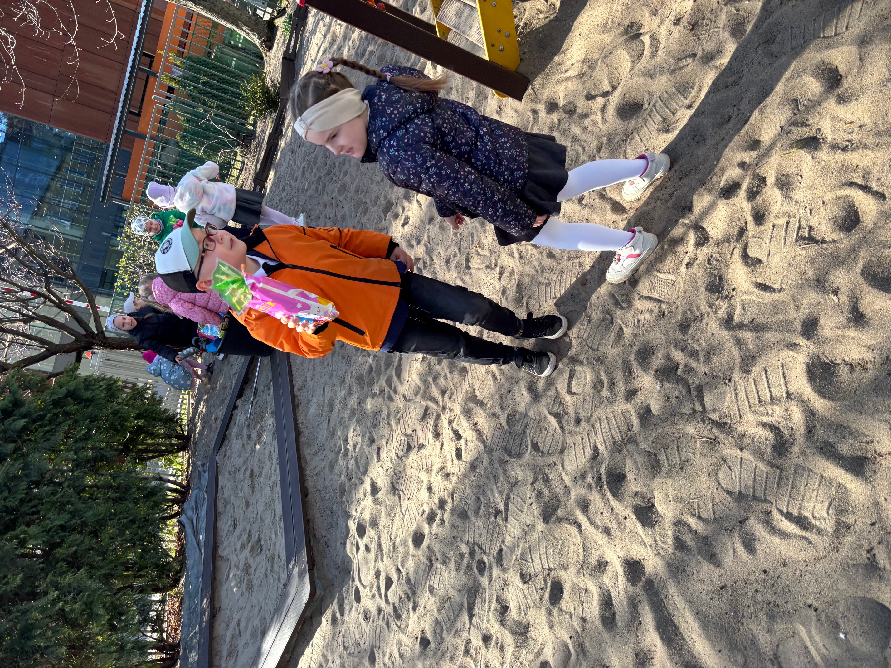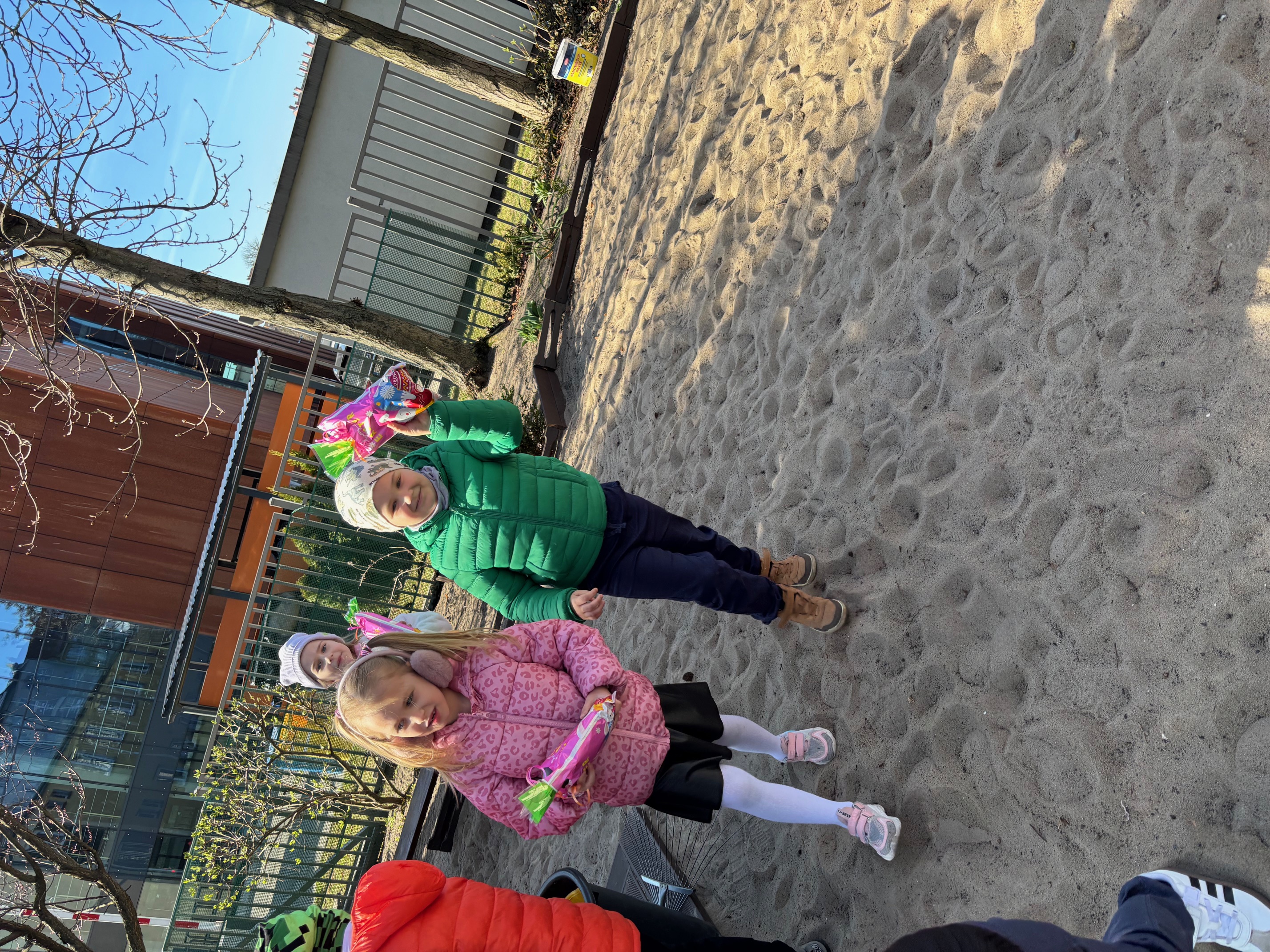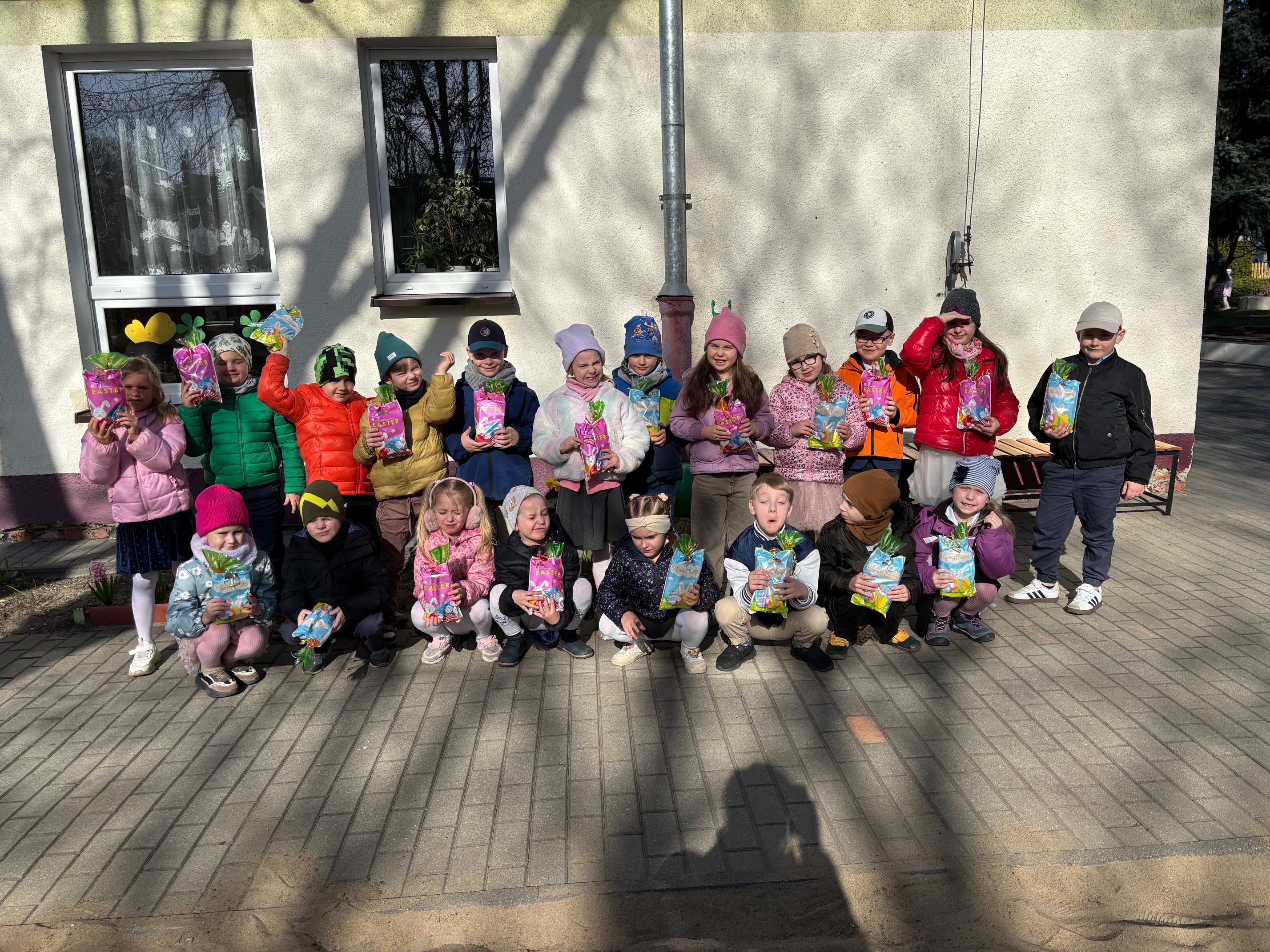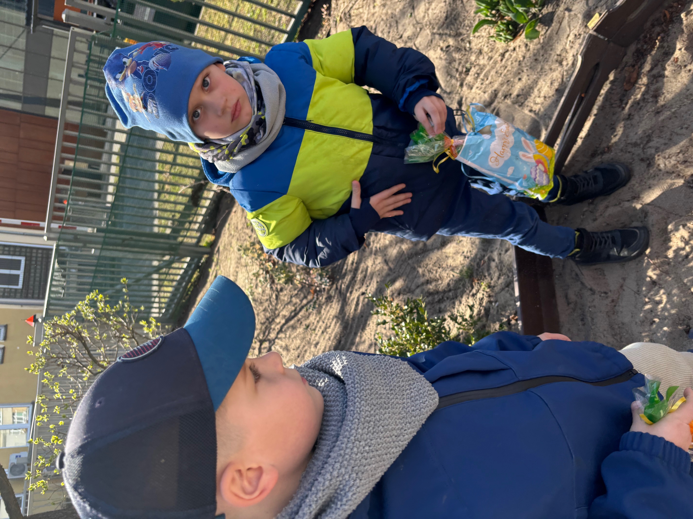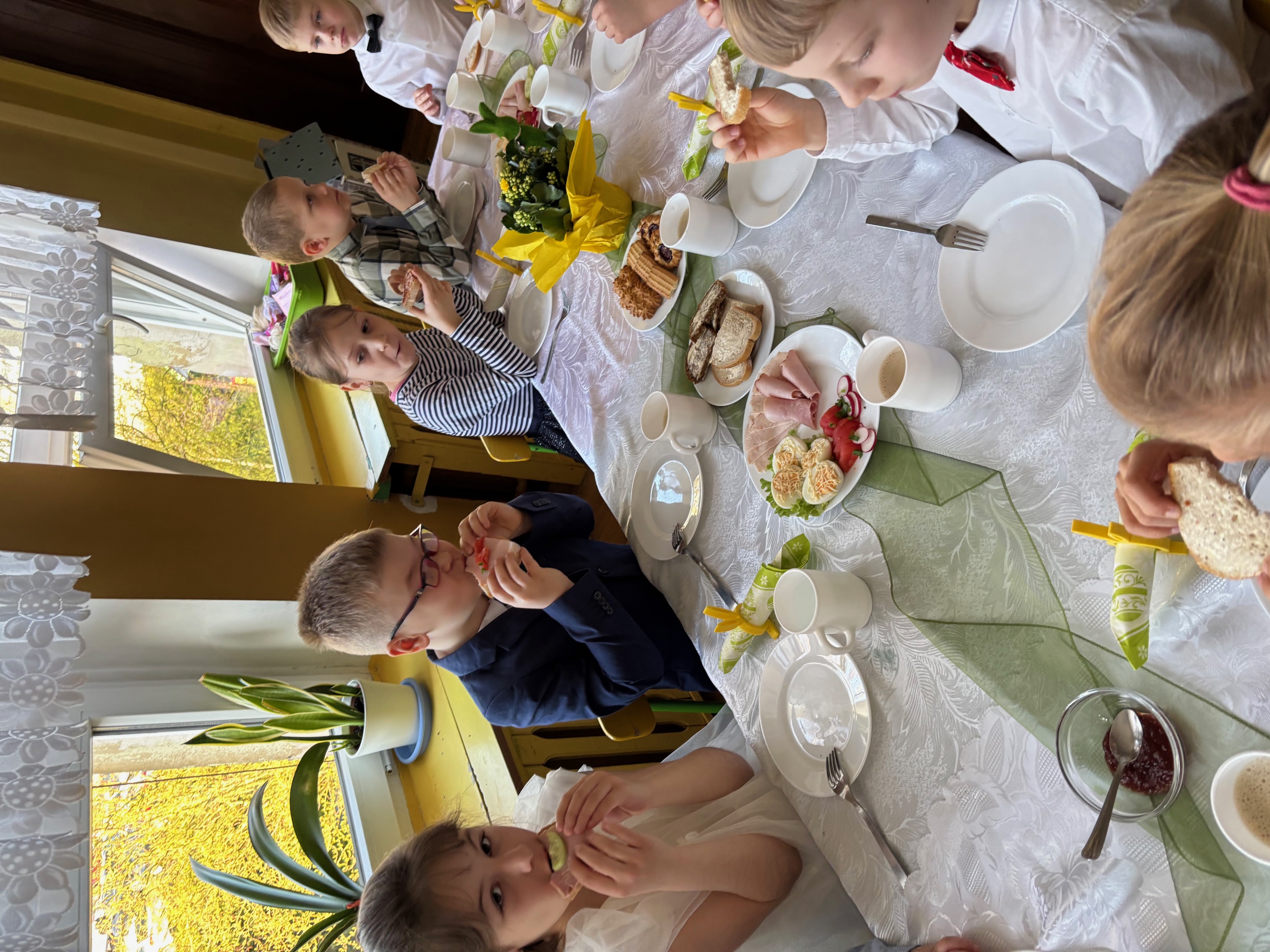 W środę 1 kwietnia w naszym przedszkolu odbyło się uroczyste śniadanie wielkanocne. Na świątecznym stole nie mogło zabraknąć jajka, szyneczki, babki. Po śniadaniu wszystkie grupy wyruszyły na poszukiwanie „prezentów od zajączka” w ogrodzie przedszkolnym.