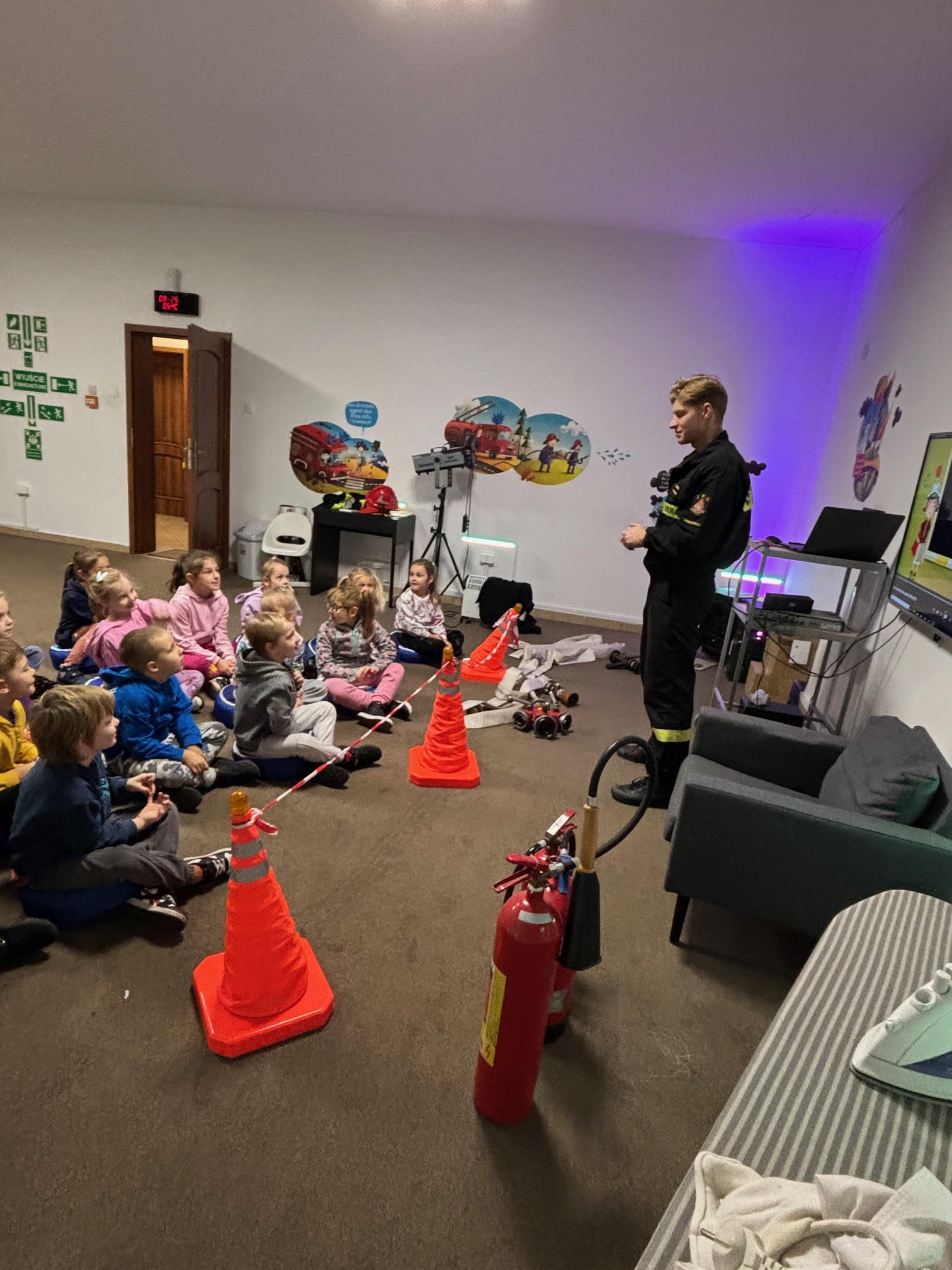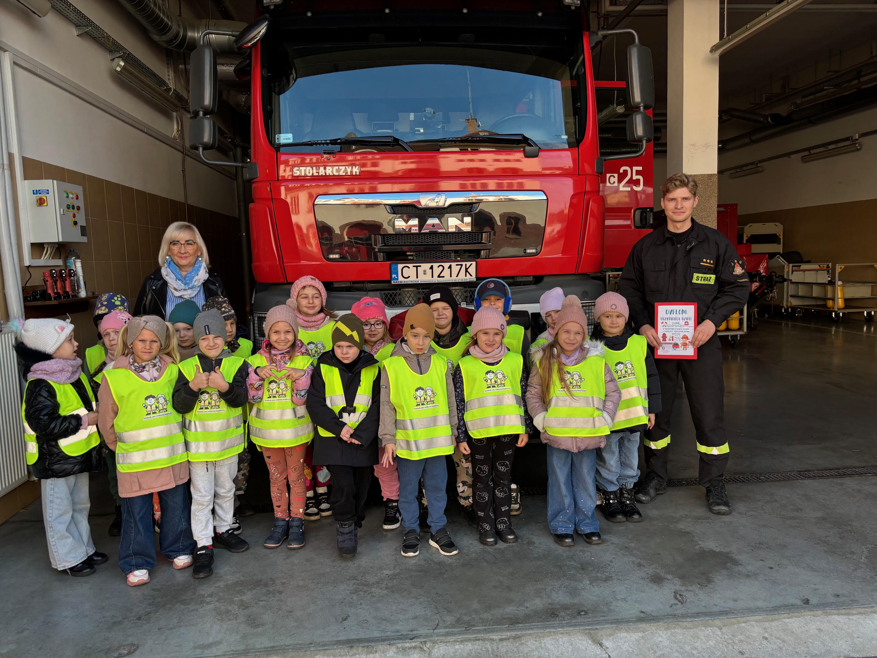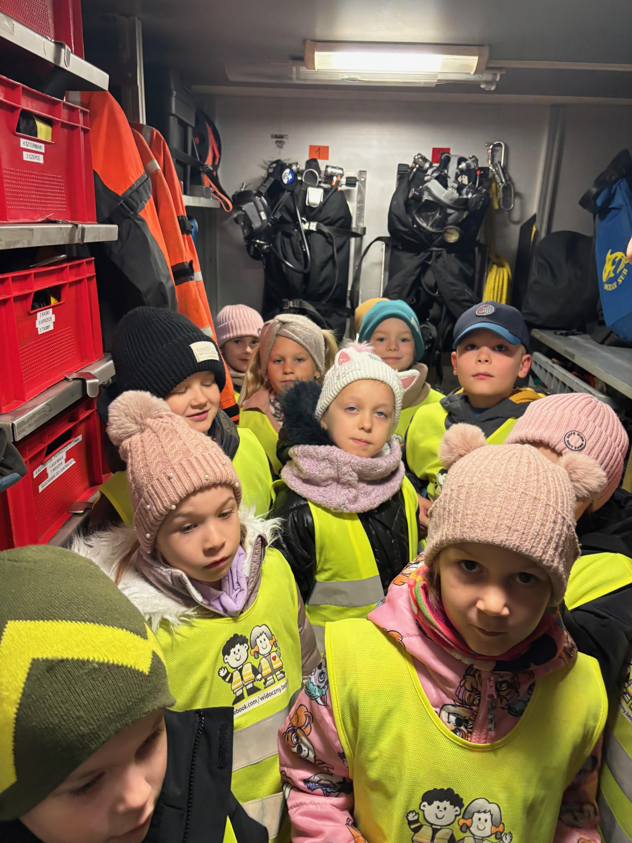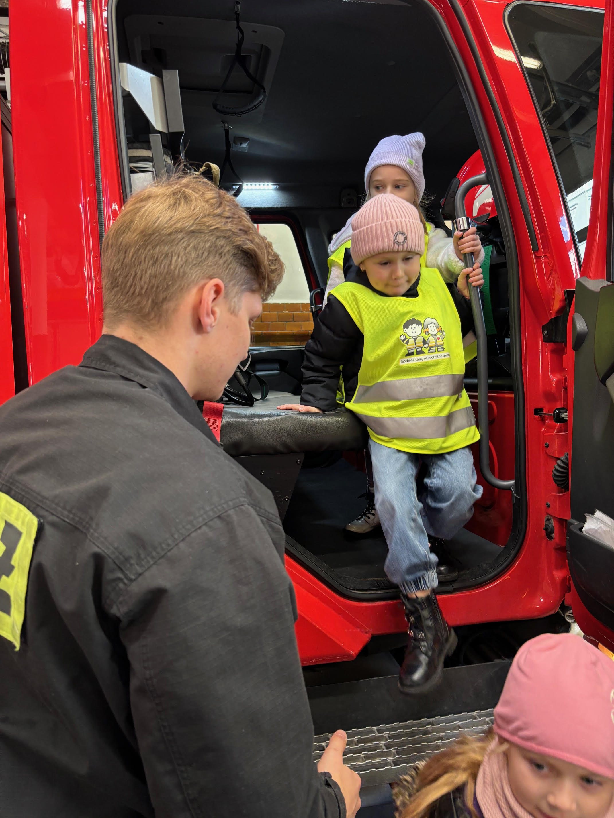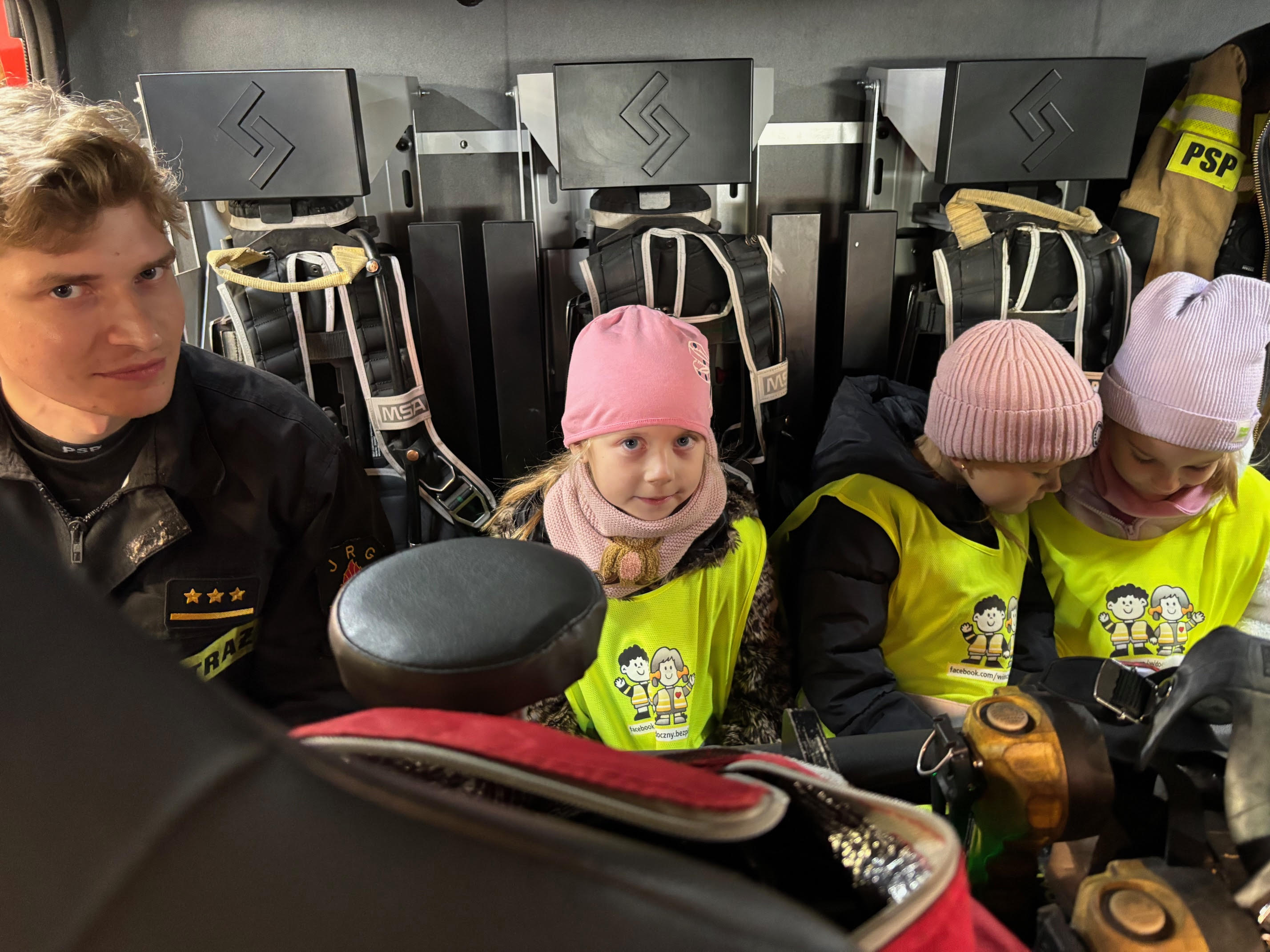 Dzisiaj braliśmy udział w zajęciach edukacyjnych „Ognik" .To program prowadzony przez Państwową Straż Pożarną, mający na celu naukę bezpieczeństwa pożarowego i zasad postępowania. Dzieci uczą się pierwszej pomocy, obsługi sprzętu i zasad ewakuacji, a także mają możliwość przymierzenia strażackiego wyposażenia i wejścia do wozu strażackiego.